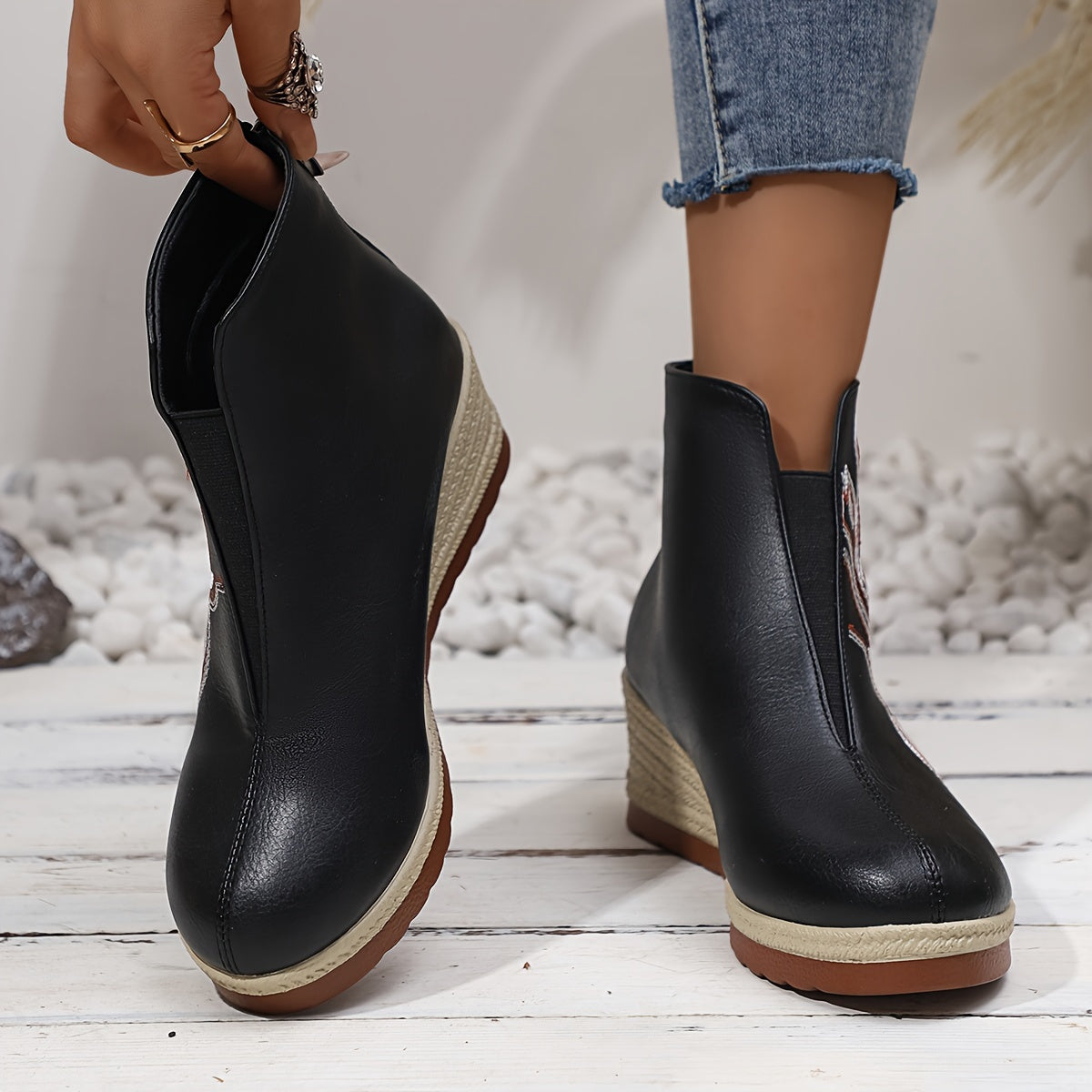 Chique dames enkellaarzen met sleehak
