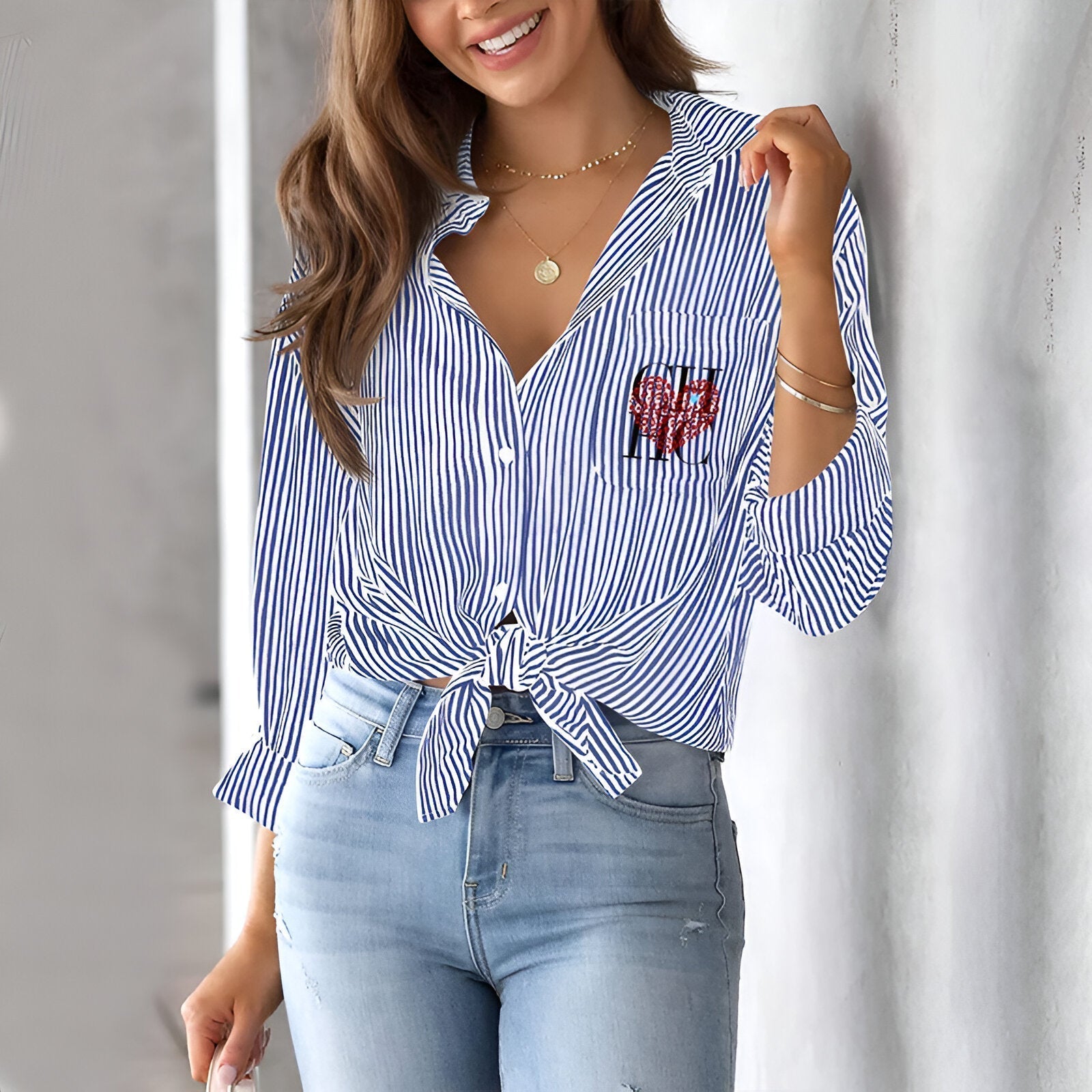 Wil jij er elke dag moeiteloos verzorgd uitzien? Met de Clio straal je stijl en zelfvertrouwen uit, of je nu op kantoor zit of een dagje uit gaat. Dit elegante gestreepte overhemd met lange mouwen is dé perfecte toevoeging aan jouw garderobe.