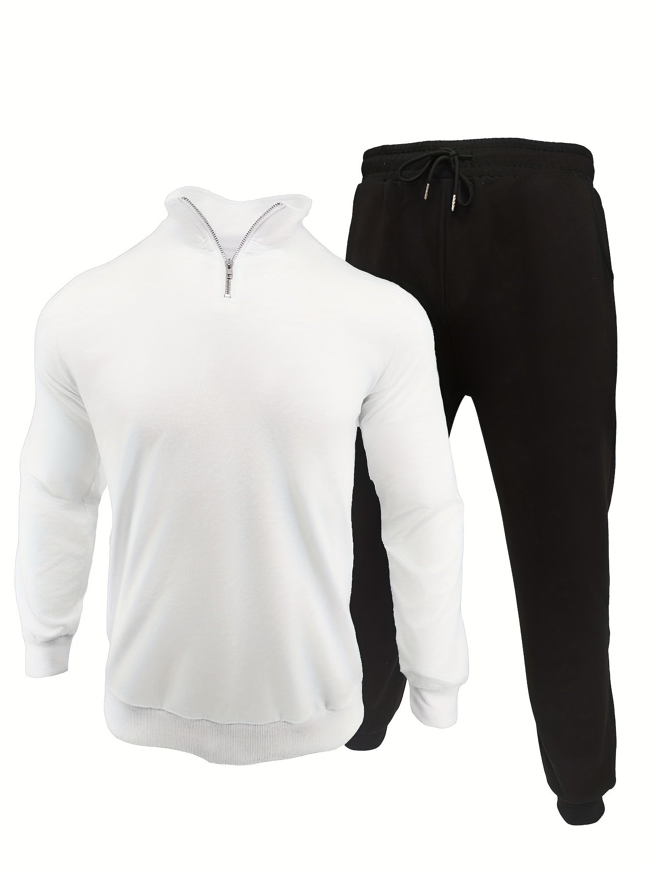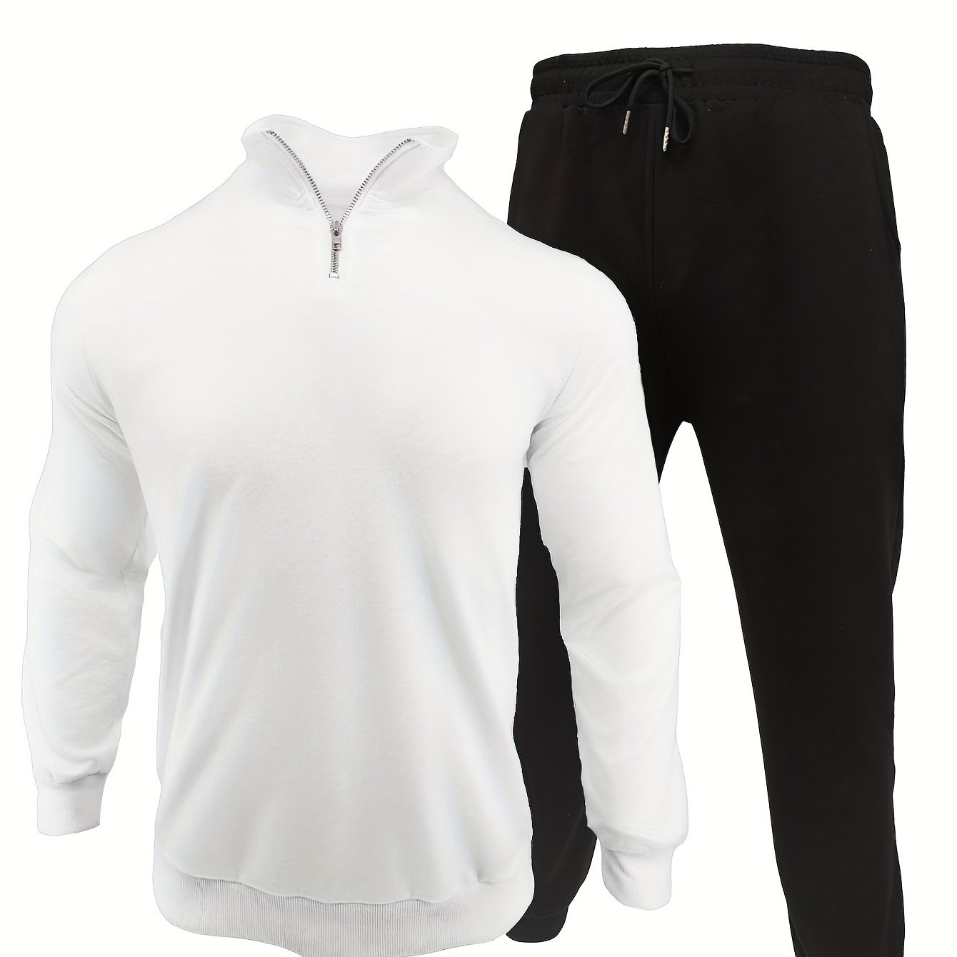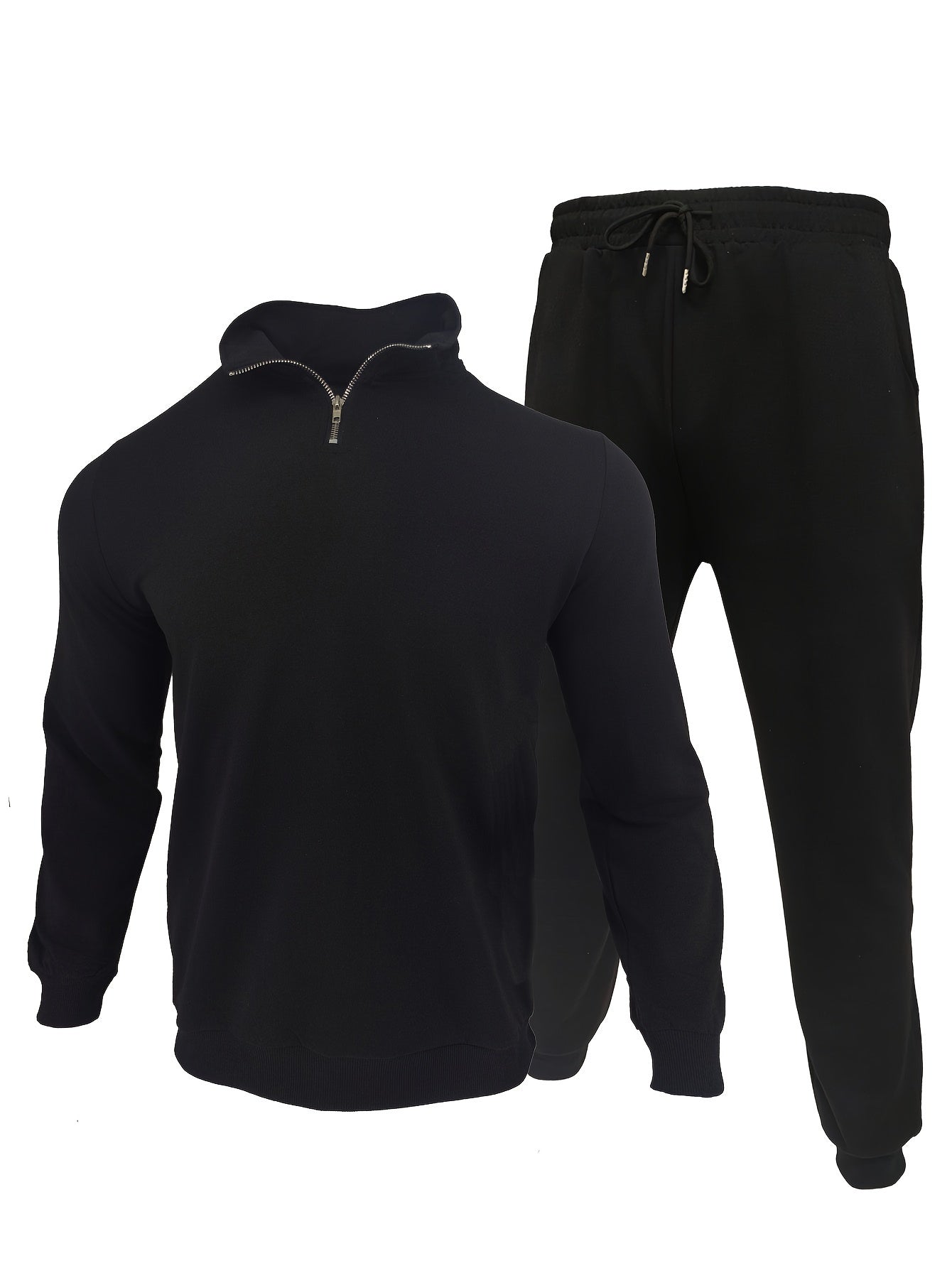 Ervaar ultiem comfort en stijl met de Daan 2-delige set, perfect voor een casual look. De set is gemaakt van ademend polyester materiaal, met een licht elastische stof voor een comfortabele pasvorm gedurende alle seizoenen. De top heeft een trendy ritssluiting, lange mouwen en een reverskraag, terwijl de broek een eenvoudige effen kleur heeft en normaal past.