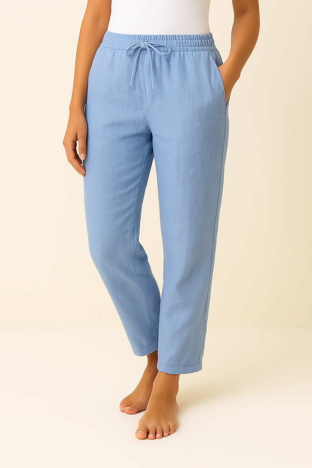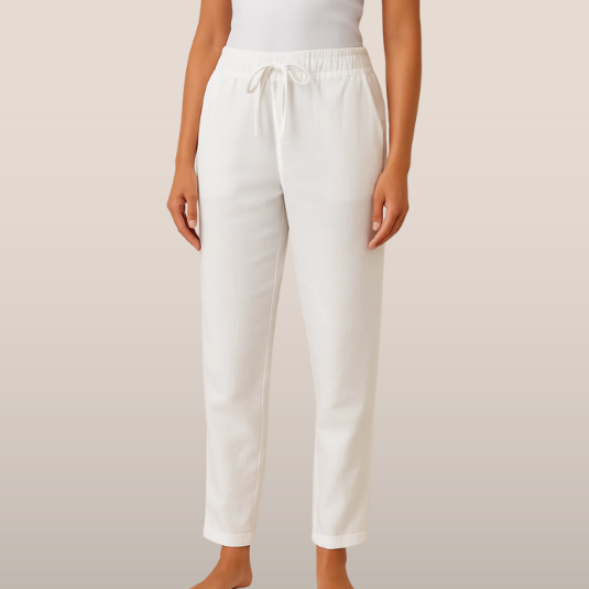 Luchtige broek met rechte pijpen en een elastische tailleband met trekkoord. Ideaal voor loungen, casual dagen of een relaxte zomerse look.