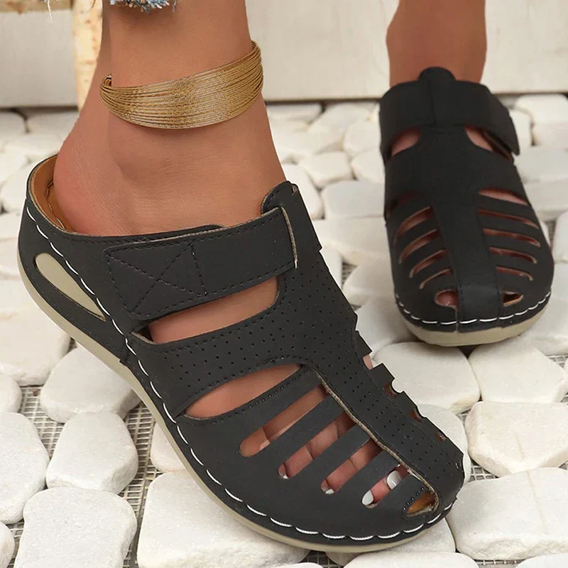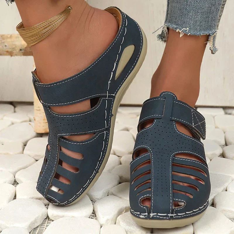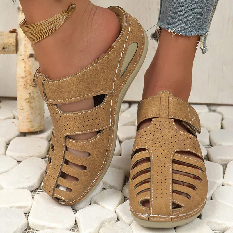 Open sandalen met stevige klittenbandsluiting en perforaties voor extra ventilatie – ontworpen voor dagelijks comfort en stabiliteit.