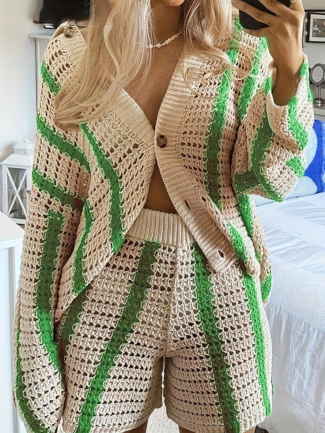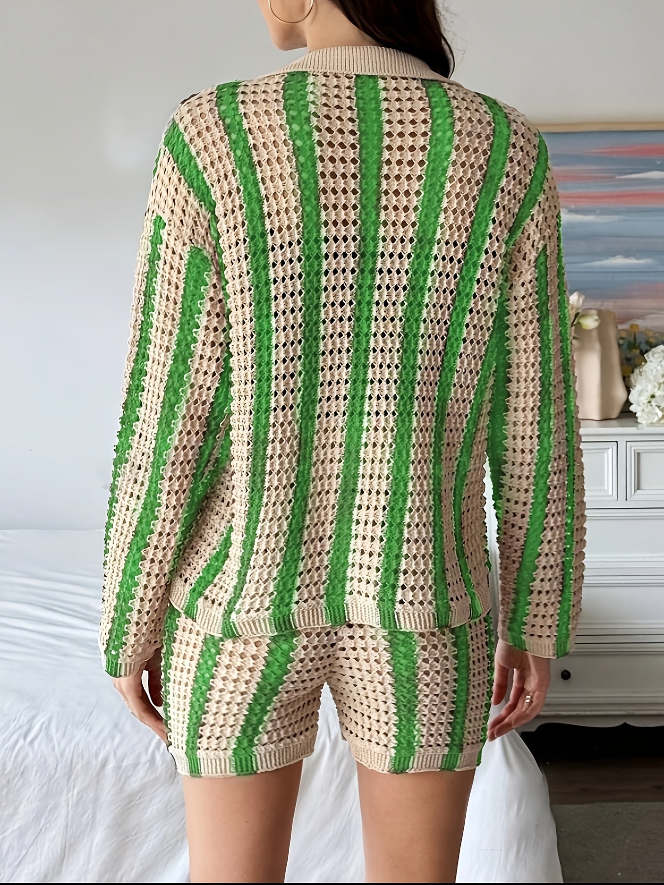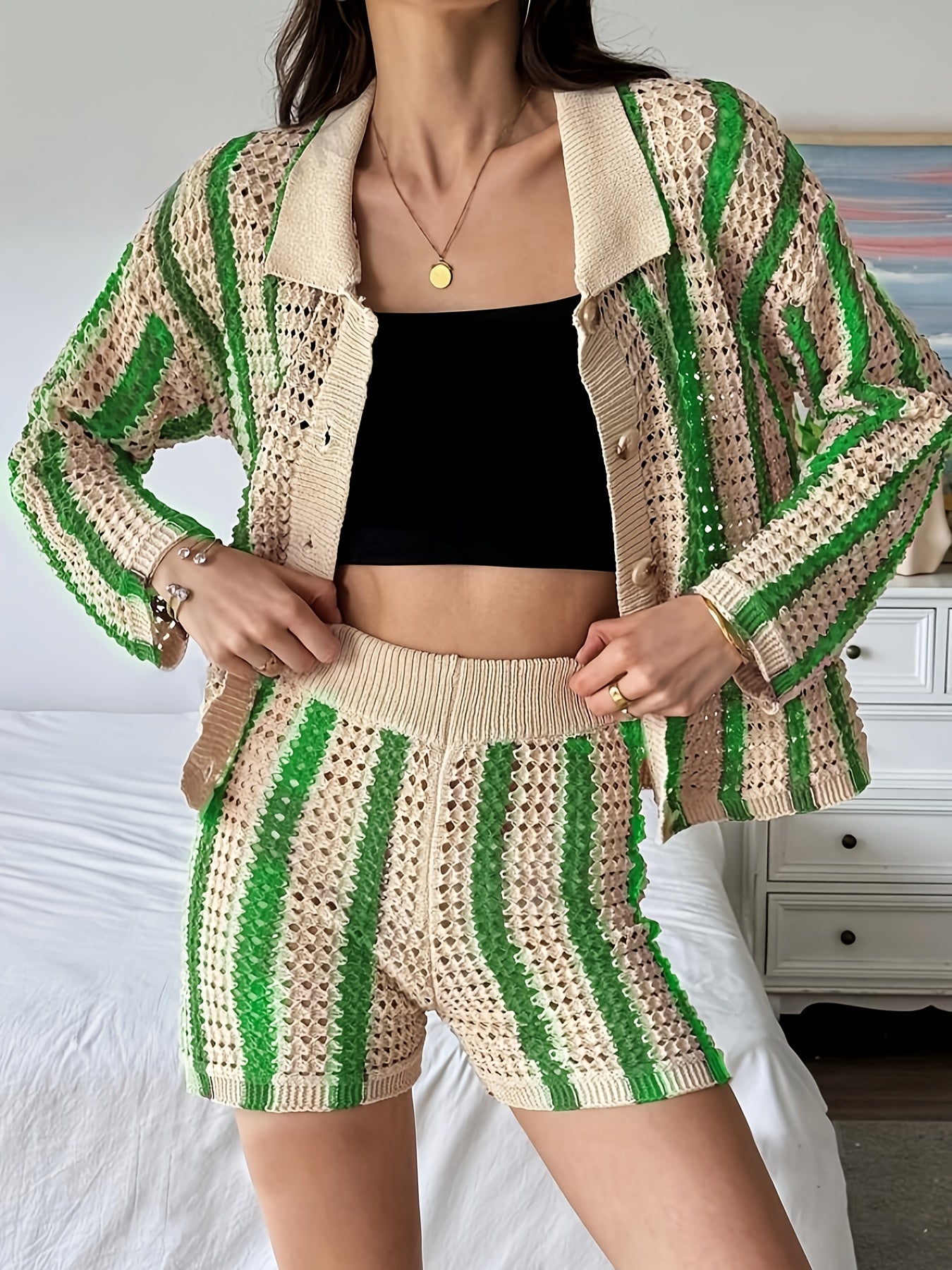 Danni | Stijlvolle Tweedelige Set met Luchtige Opengewerkte Strepen