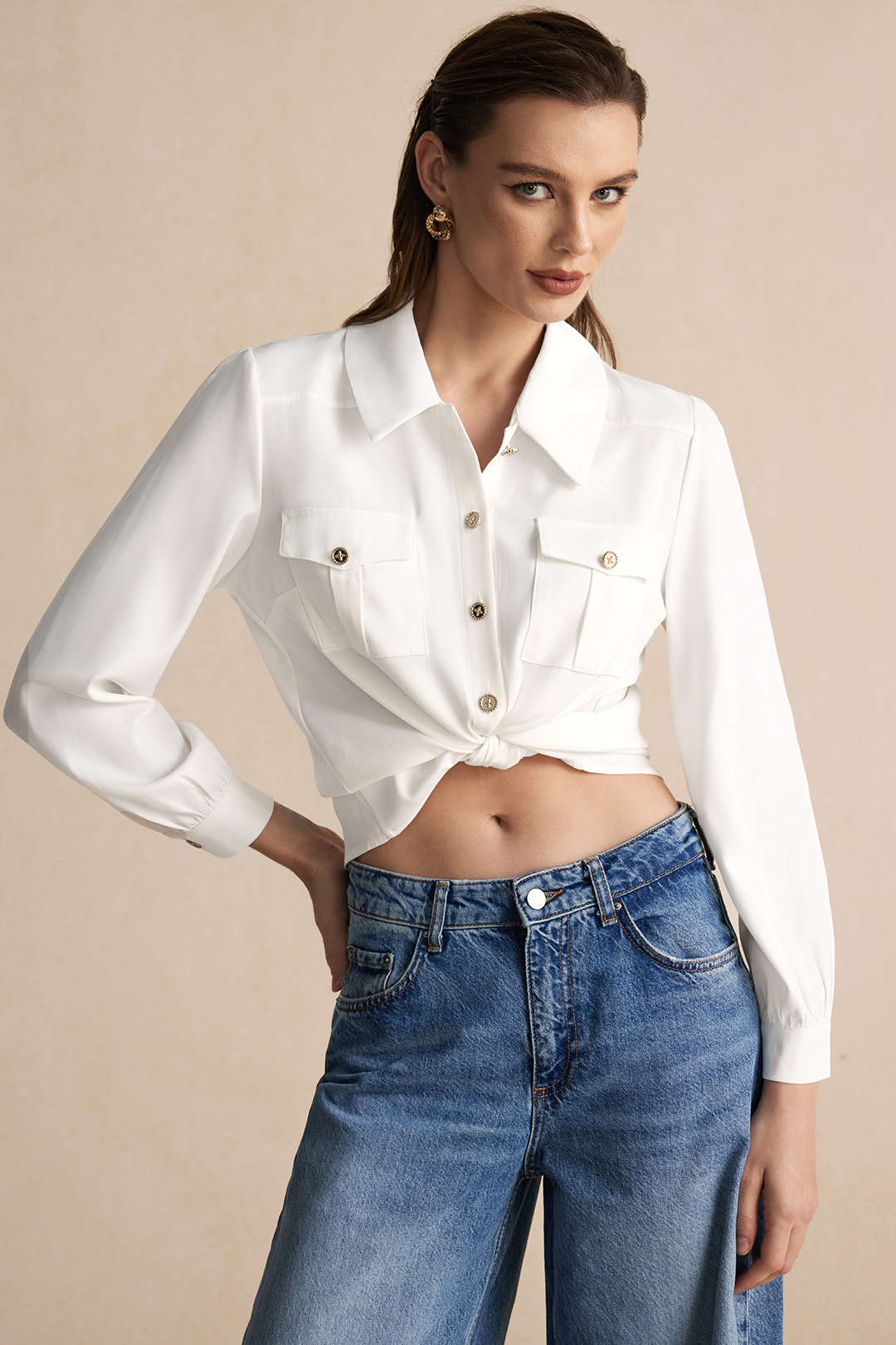 Delphine - Elegante Knopzak Vrouwelijke Lange Mouwen Shirt