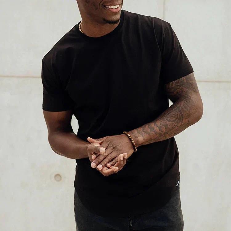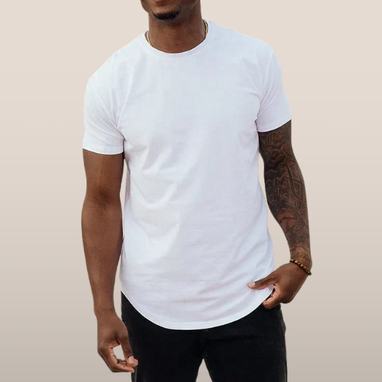 Een essentieel kledingstuk voor elke garderobe. Dit basic T-shirt heeft een klassieke ronde hals en een aansluitende pasvorm. De licht afgeronde zoom geeft het ontwerp een eigentijdse uitstraling. Ideaal om solo te dragen of als basislaag onder een overshirt of jas.