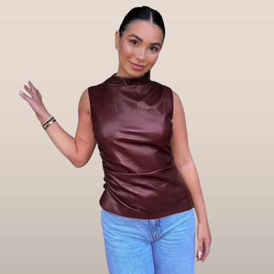 Mouwloze vegan leren top – Elegante look met moderne edge