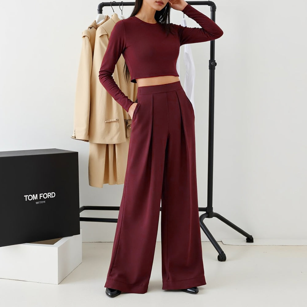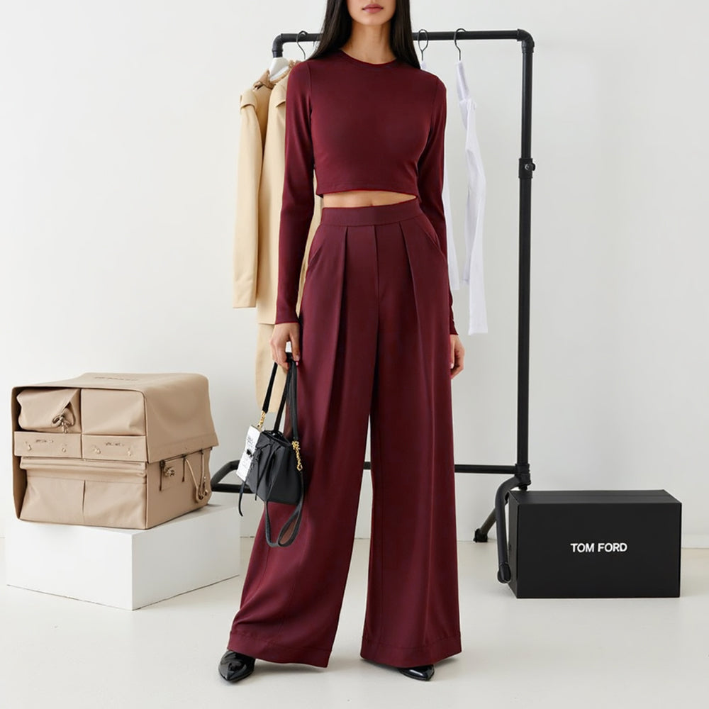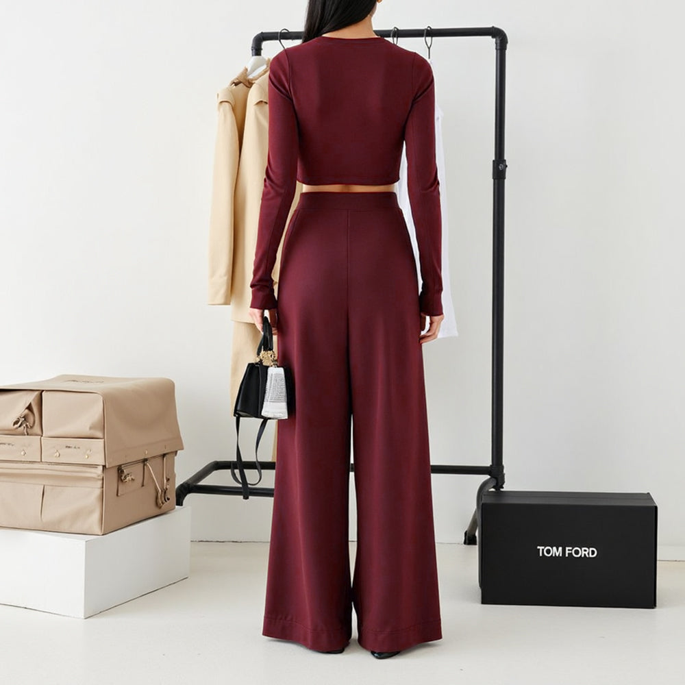 ✔ Trendy en Elegant: De combinatie van een cropped top en wijde broek zorgt voor een modieuze en verfijnde uitstraling.
