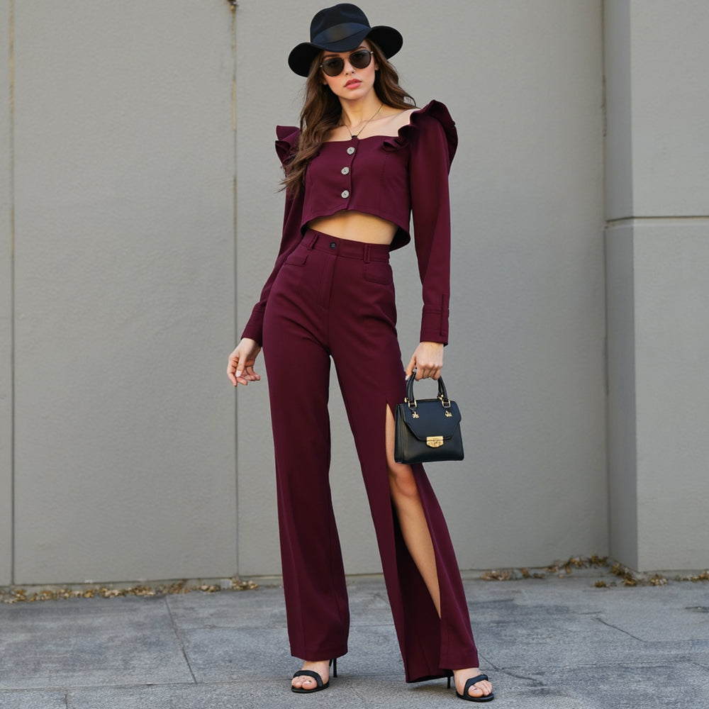 ✔ Trendy en elegant design: De blazer met speelse ruches en de broek met split zorgen voor een unieke en stijlvolle uitstraling.
