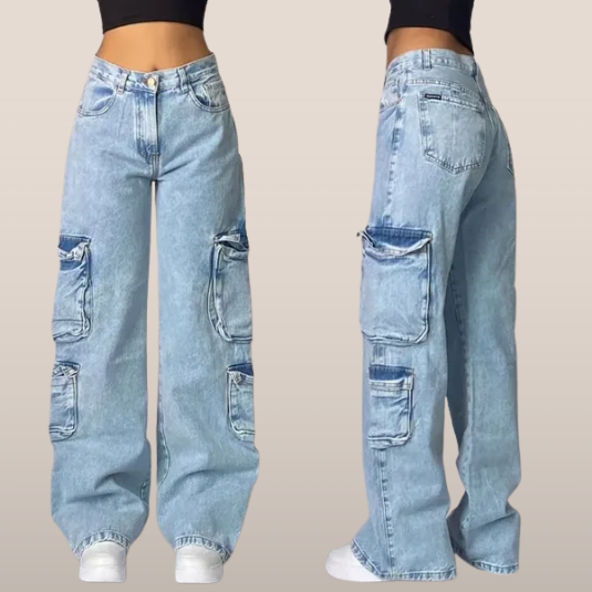 Nayla is een loose-fit jeans met opvallende cargozakken aan beide zijden. Het ontwerp combineert een vintage look met praktische details, ideaal voor wie functionaliteit en stijl wil combineren in één item.