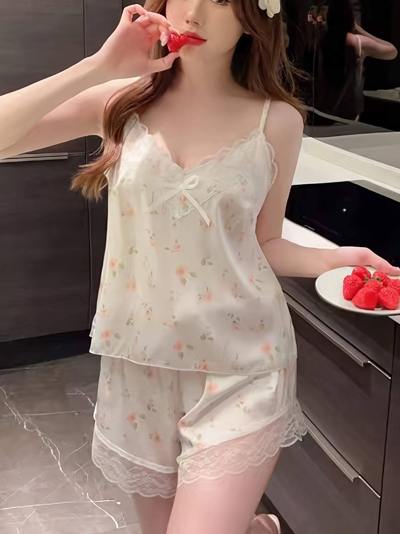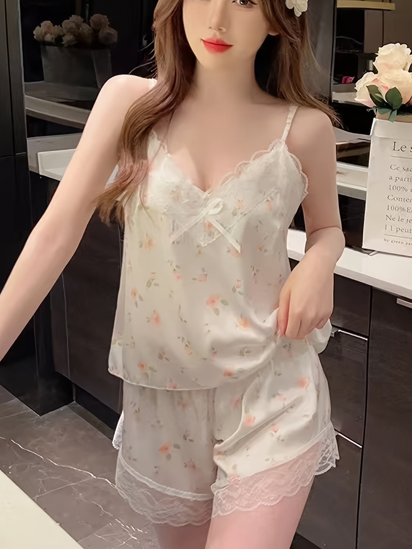 Nicole | Dames Loungewear Set met Camisole en Bloemenprint