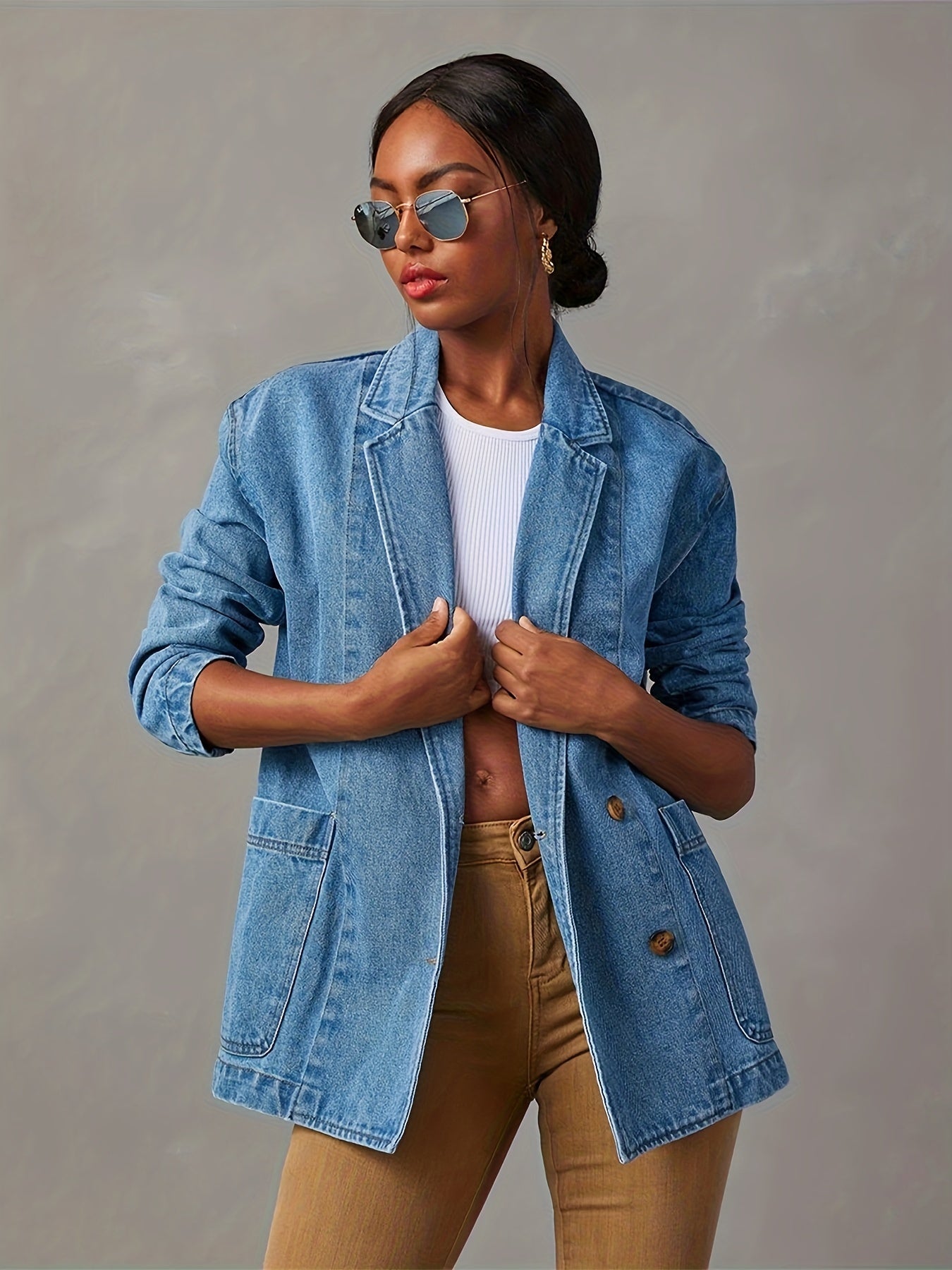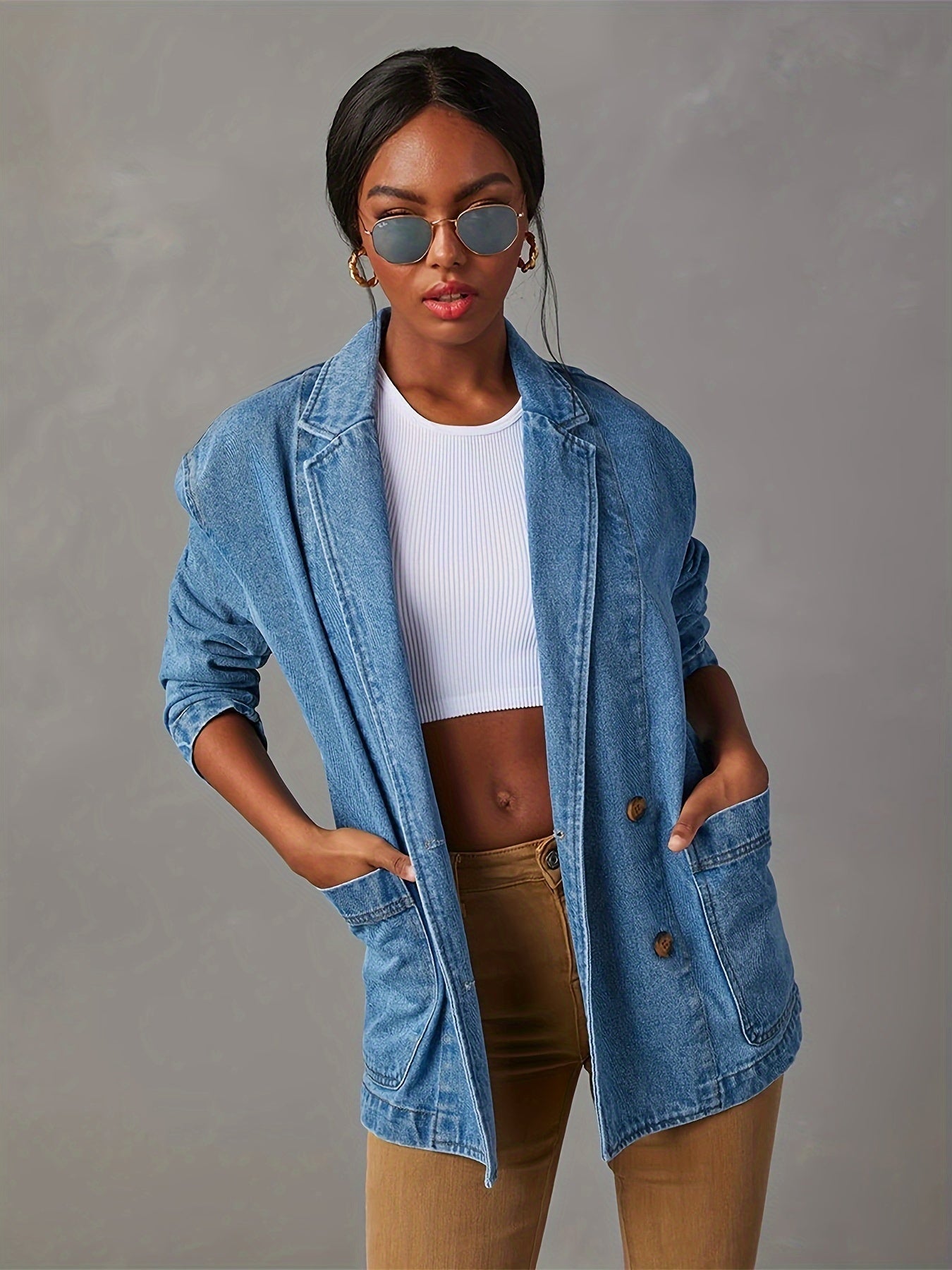 Nina | Gewassen blauwe lange mouwen spijkerjas