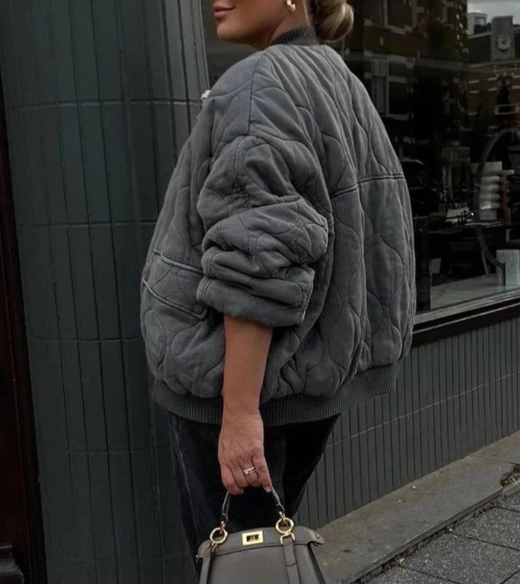 De Noor bomberjack is een trendy en comfortabel oversized jack met een gewatteerd patroon. Dankzij de geribde boorden en de relaxte pasvorm is dit een veelzijdig stuk dat moeiteloos gecombineerd kan worden met verschillende outfits.
