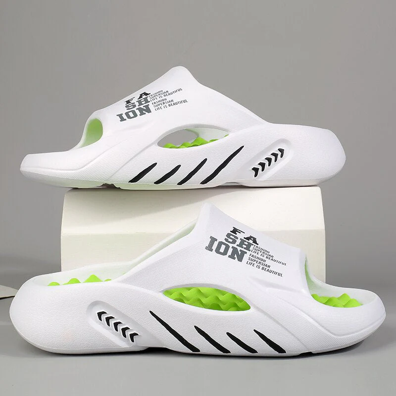 Praktische slippers met een ergonomisch voetbed en masserend oppervlak. Gemaakt van duurzaam EVA-materiaal voor langdurig gebruik binnen of buiten. Geschikt voor thuis, de wellness of zomerse uitstapjes.
