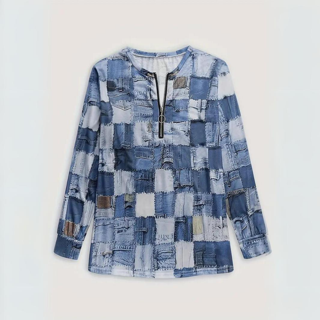 - Veelzijdig design: Met de moderne kwart-ritssluiting en patchwork details kan deze top zowel casual als formeel gedragen worden, perfect voor diverse gelegenheden.