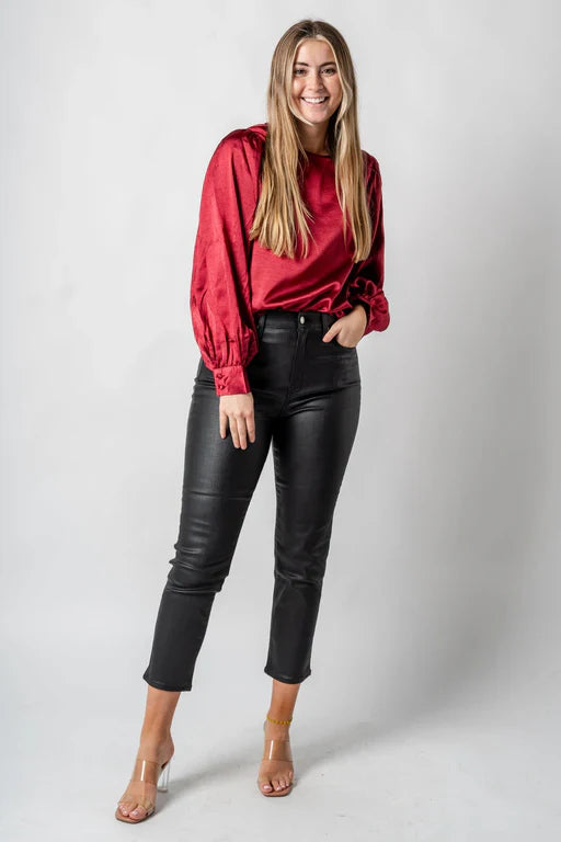 Elegante satijnen blouse met opvallende ballonmouwen. Deze blouse straalt luxe en verfijning uit, met een soepele glans en een losse, comfortabele pasvorm. Ideaal voor zowel formele als casual gelegenheden om een stijlvolle statement te maken.