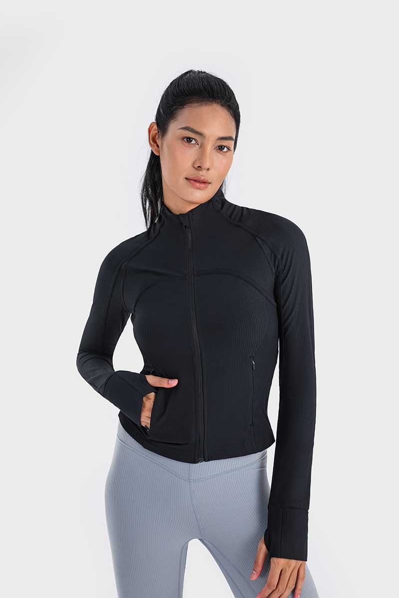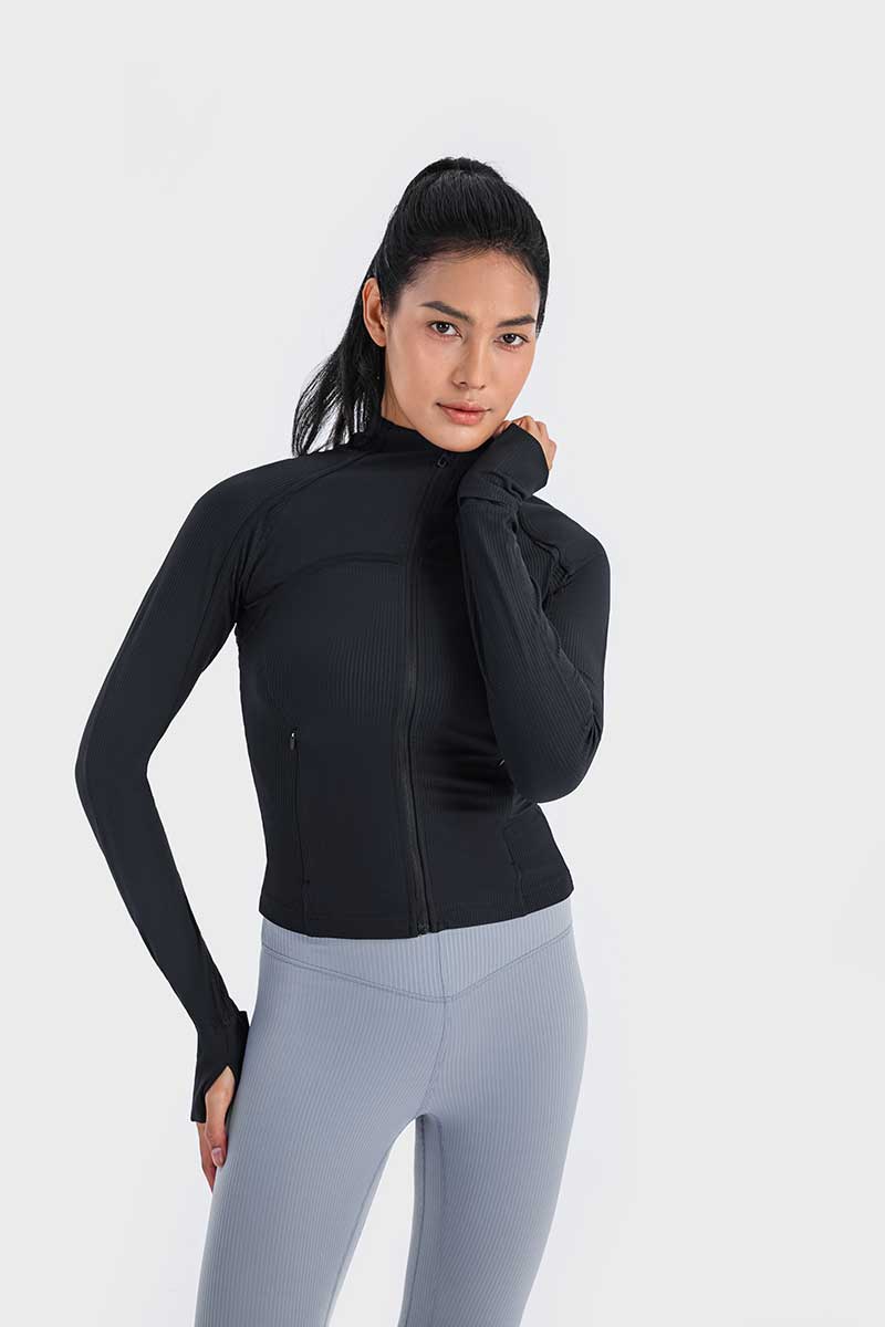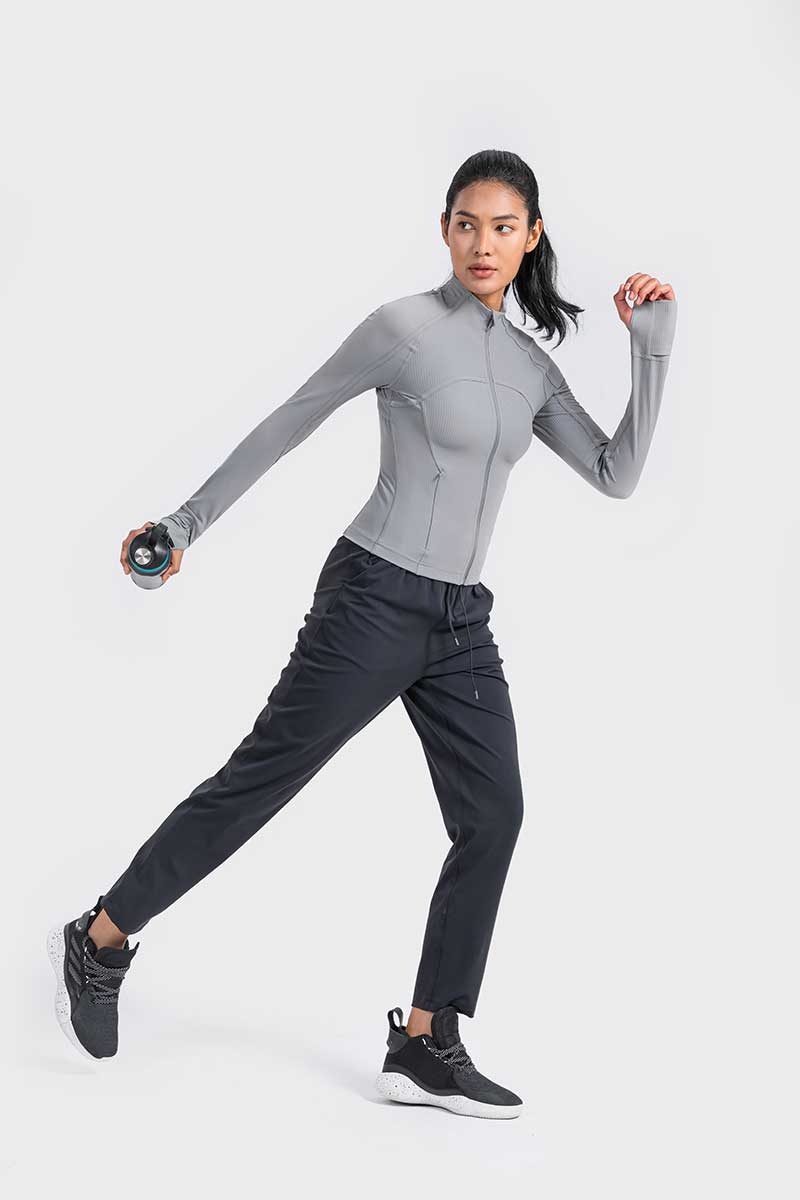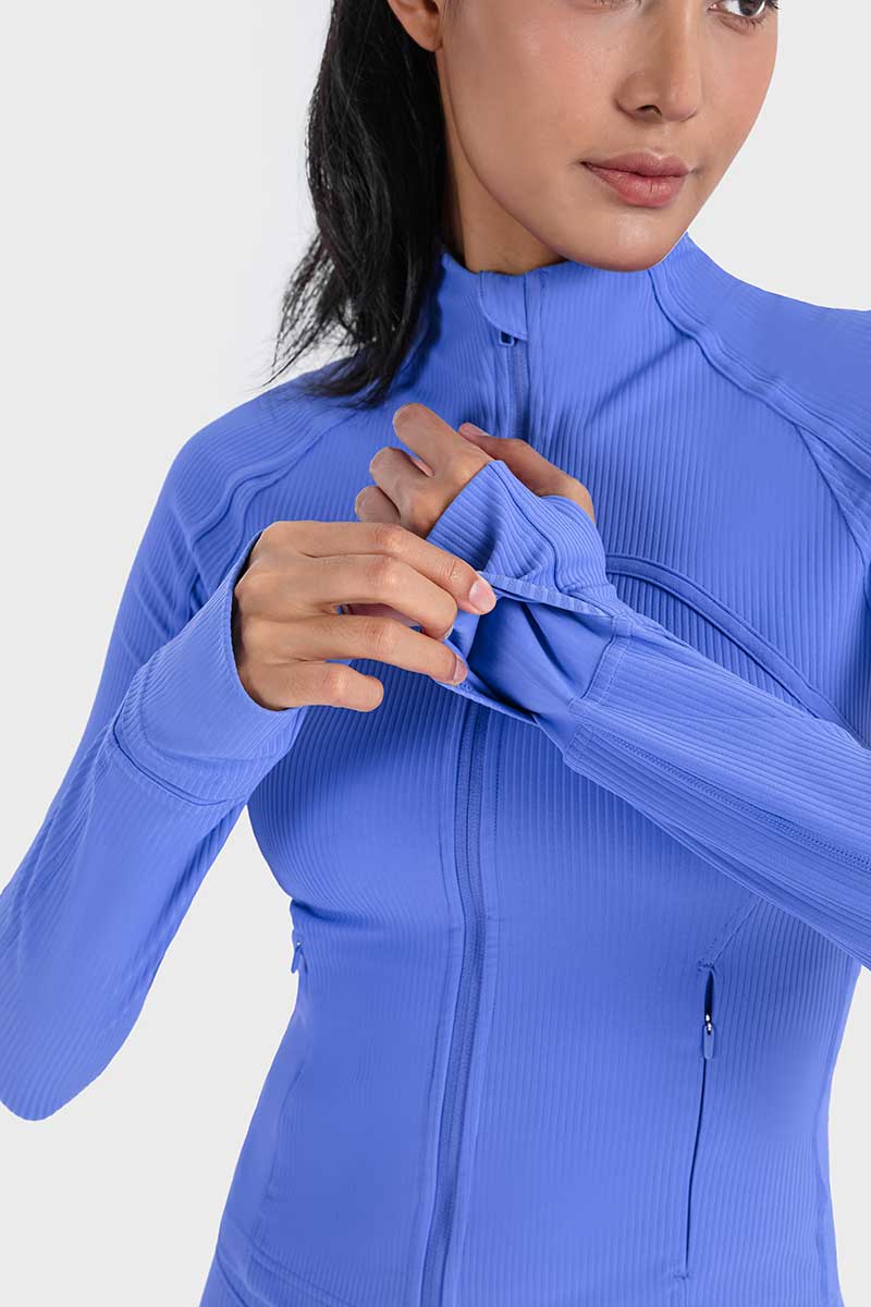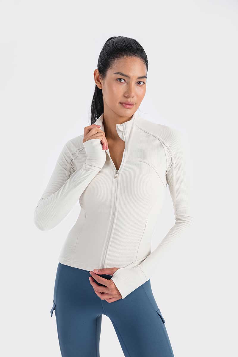 Met een unieke mix van hoogwaardig nylon en spandex absorbeert deze jas vocht effectief en droogt hij snel, zodat je koel en comfortabel blijft tijdens elke beweging. De duimgaten houden de mouwen op hun plaats en bieden extra warmte voor je handen op koude dagen.