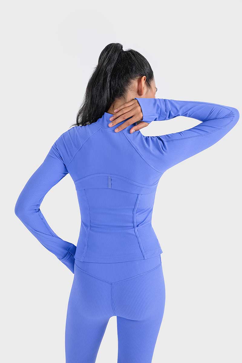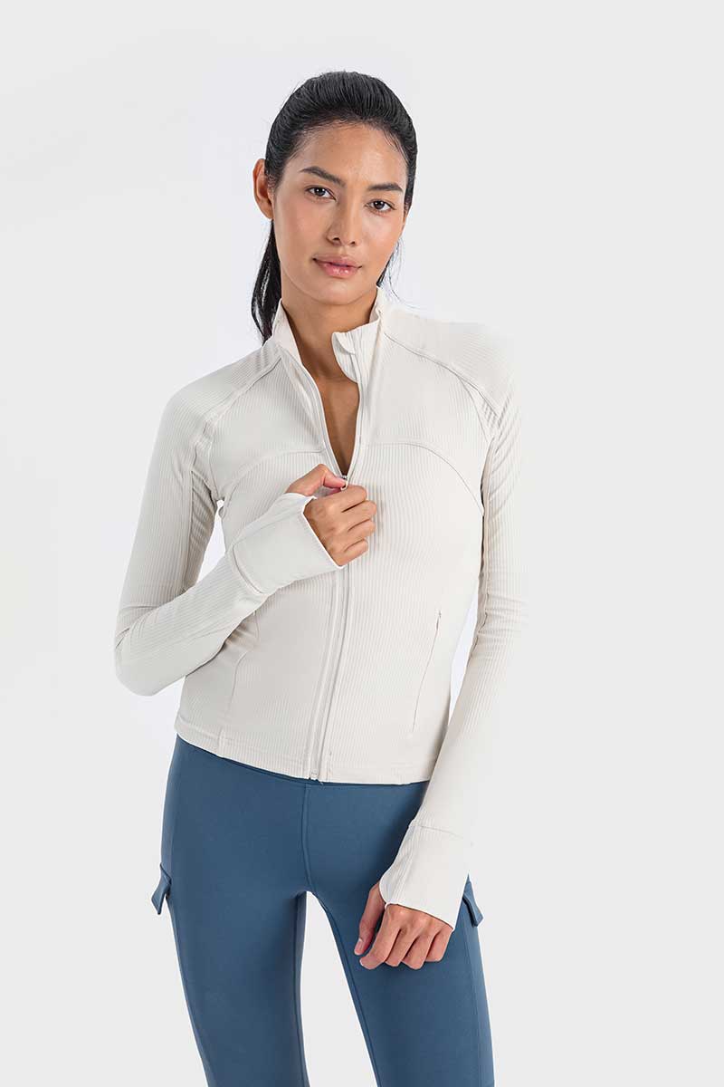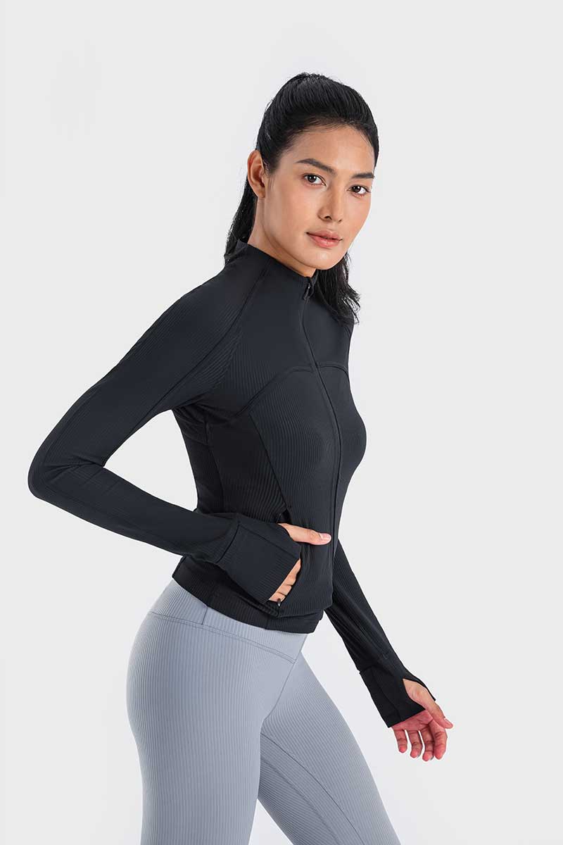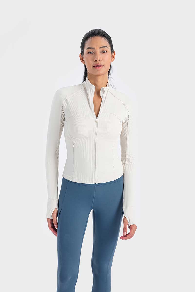 Met een unieke mix van hoogwaardig nylon en spandex absorbeert deze jas vocht effectief en droogt hij snel, zodat je koel en comfortabel blijft tijdens elke beweging. De duimgaten houden de mouwen op hun plaats en bieden extra warmte voor je handen op koude dagen.