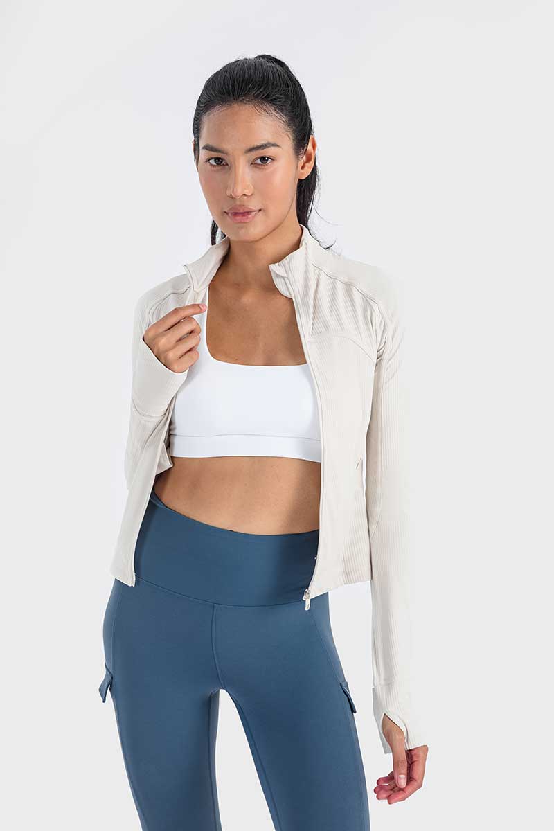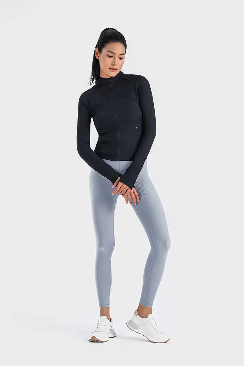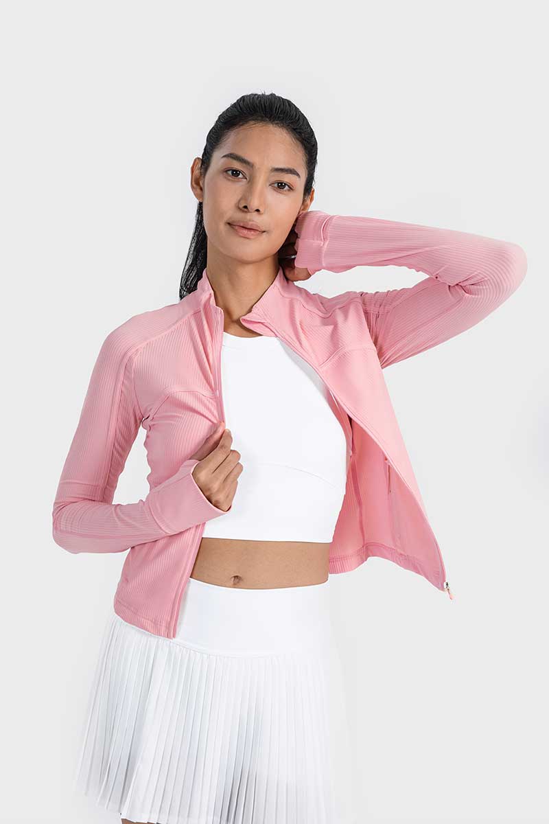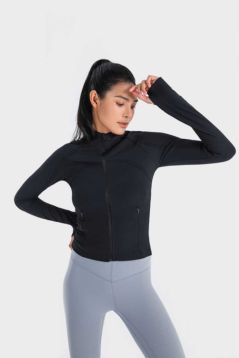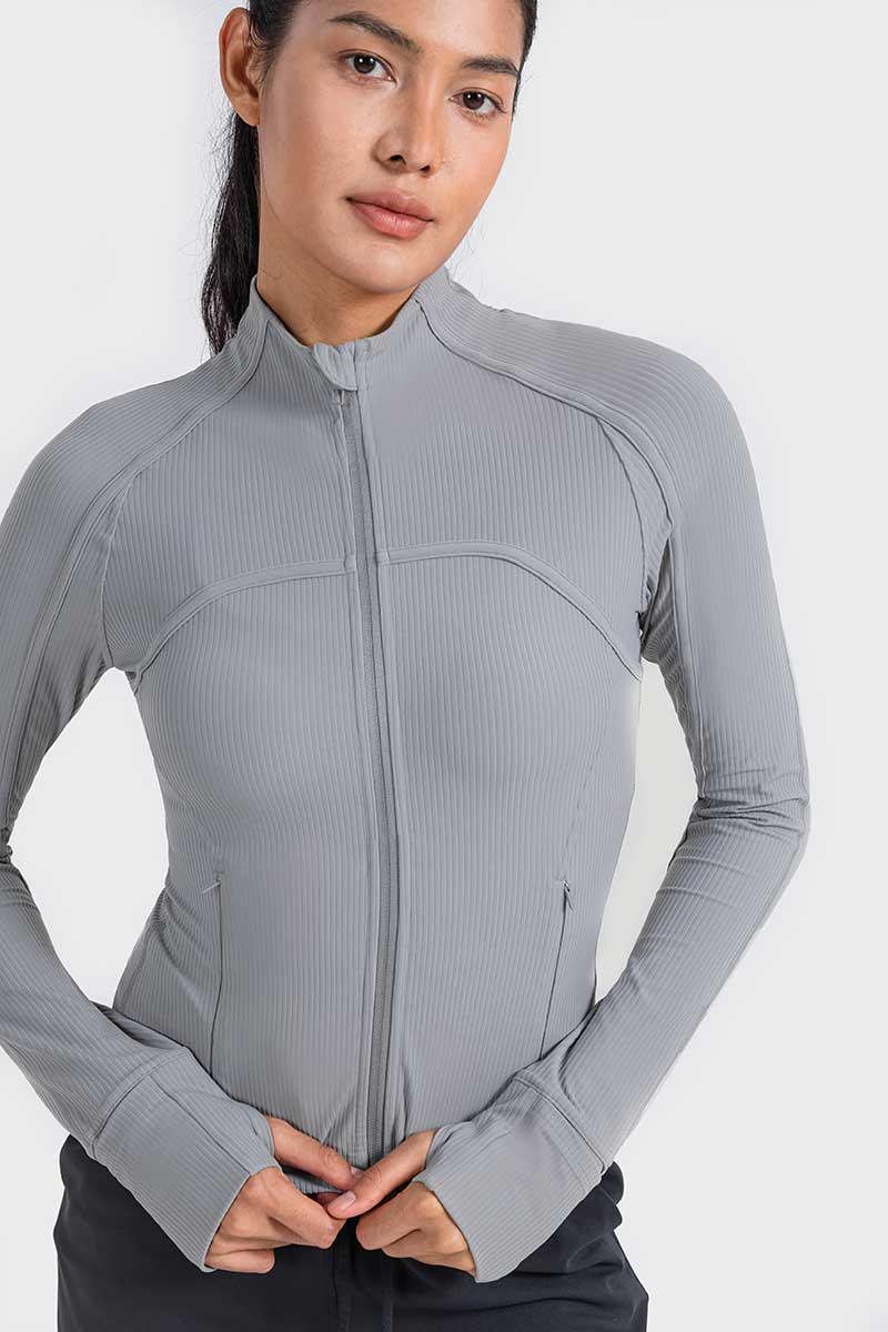 Met een unieke mix van hoogwaardig nylon en spandex absorbeert deze jas vocht effectief en droogt hij snel, zodat je koel en comfortabel blijft tijdens elke beweging. De duimgaten houden de mouwen op hun plaats en bieden extra warmte voor je handen op koude dagen.