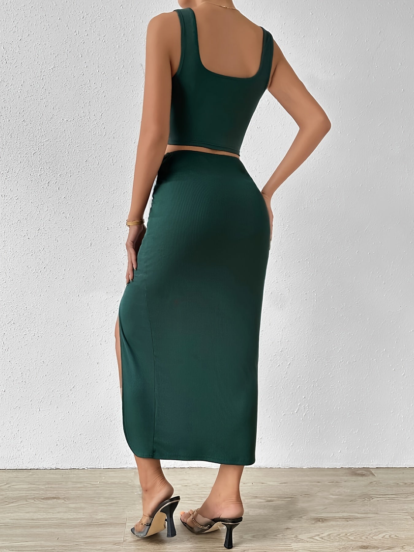✔ Trendy en Elegant Design – De stijlvolle combinatie van een cropped top en een lange rok met split zorgt voor een vrouwelijke en verfijnde uitstraling.