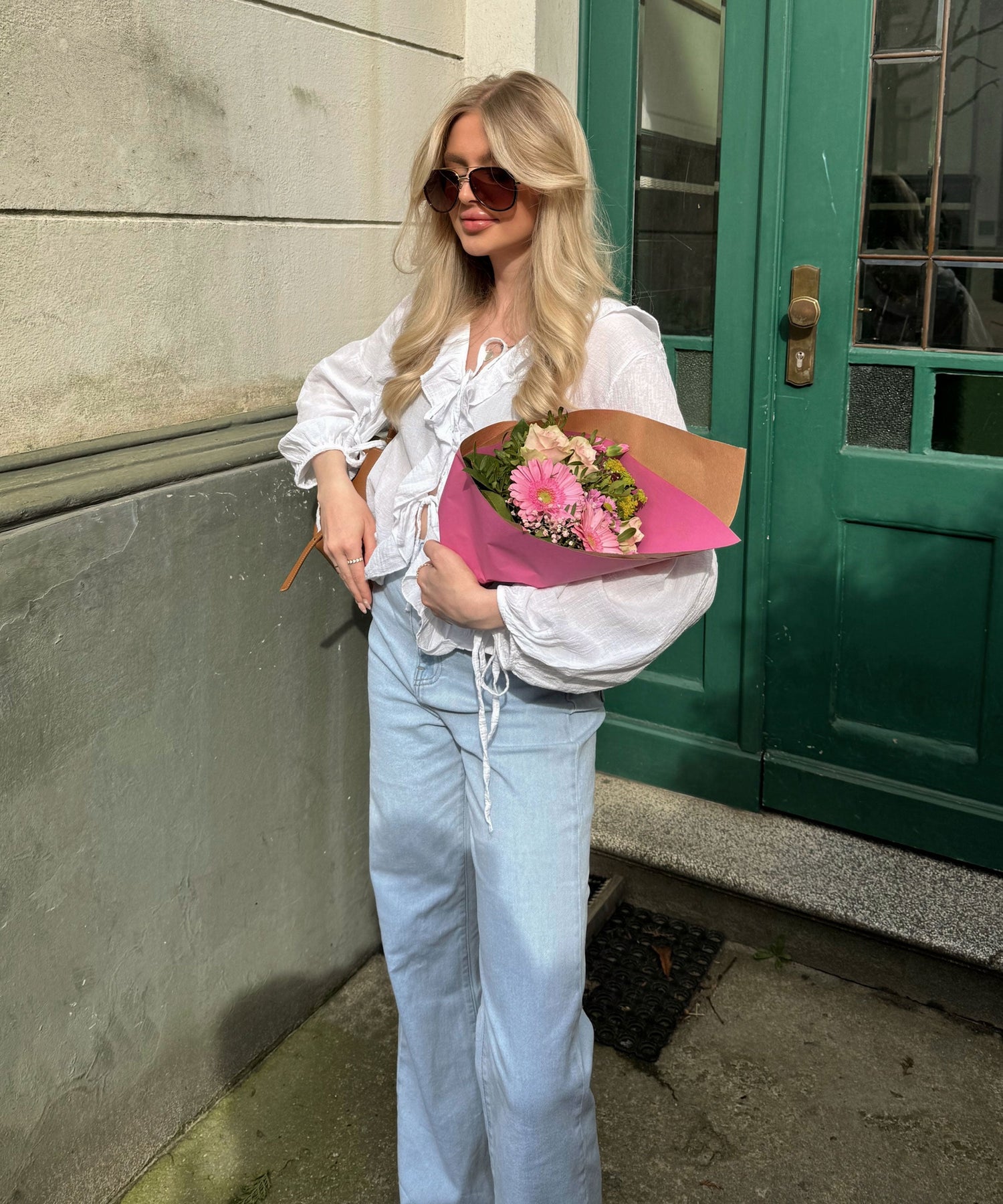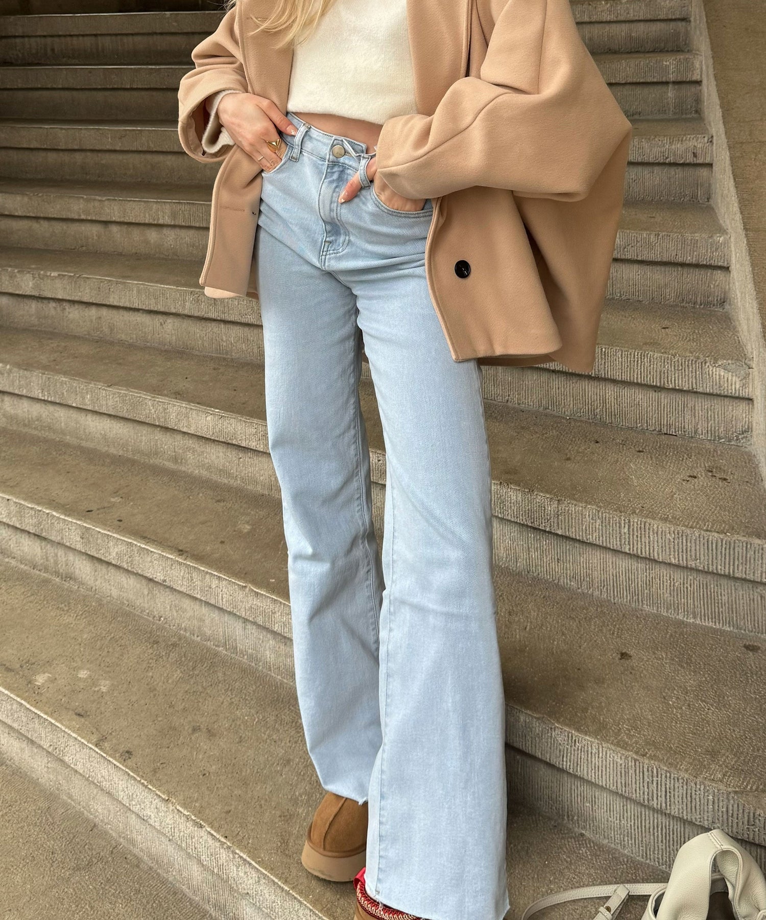 Deze jeans zijn gemaakt van premium denim en zijn zacht maar duurzaam, met precies de juiste hoeveelheid stretch om de hele dag met je mee te bewegen. Of je ze nu combineert met een ingestopte blouse voor een verzorgde look of een casual T-shirt voor een relaxte vibe, deze jeans met wijde pijpen zijn perfect voor elke gelegenheid.