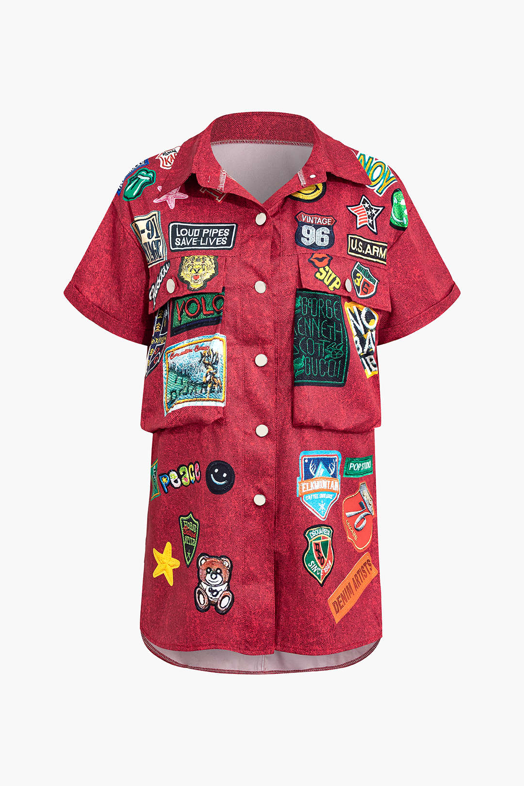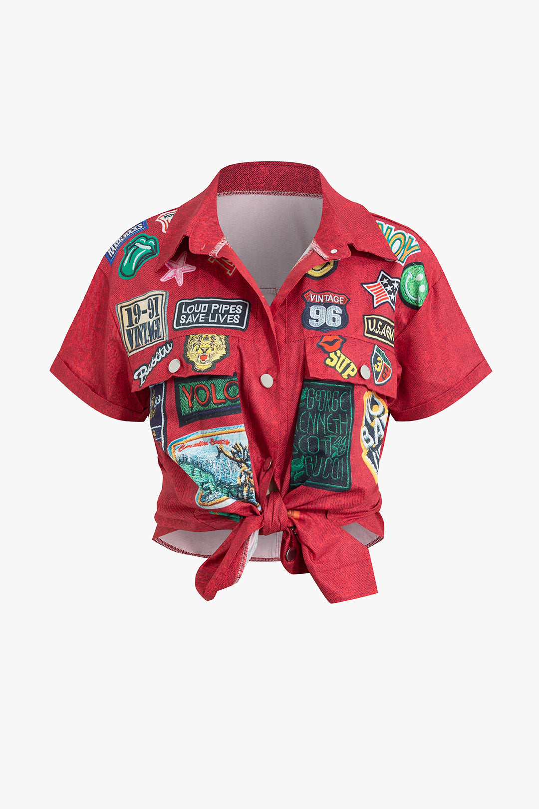 Yelena - Trendy Knoop Voorkant Gedrukt Dames Cropped Shirt