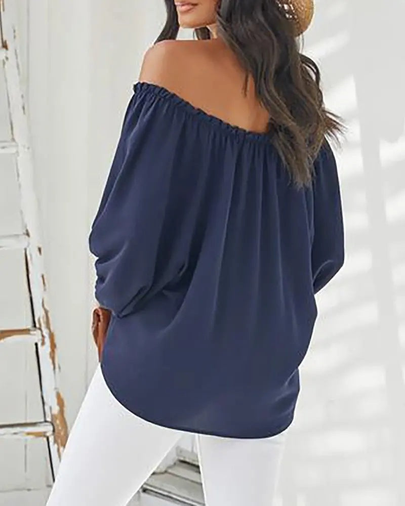 Voeg een vleugje verfijning toe aan je garderobe met deze modieuze off-shoulder blouse!